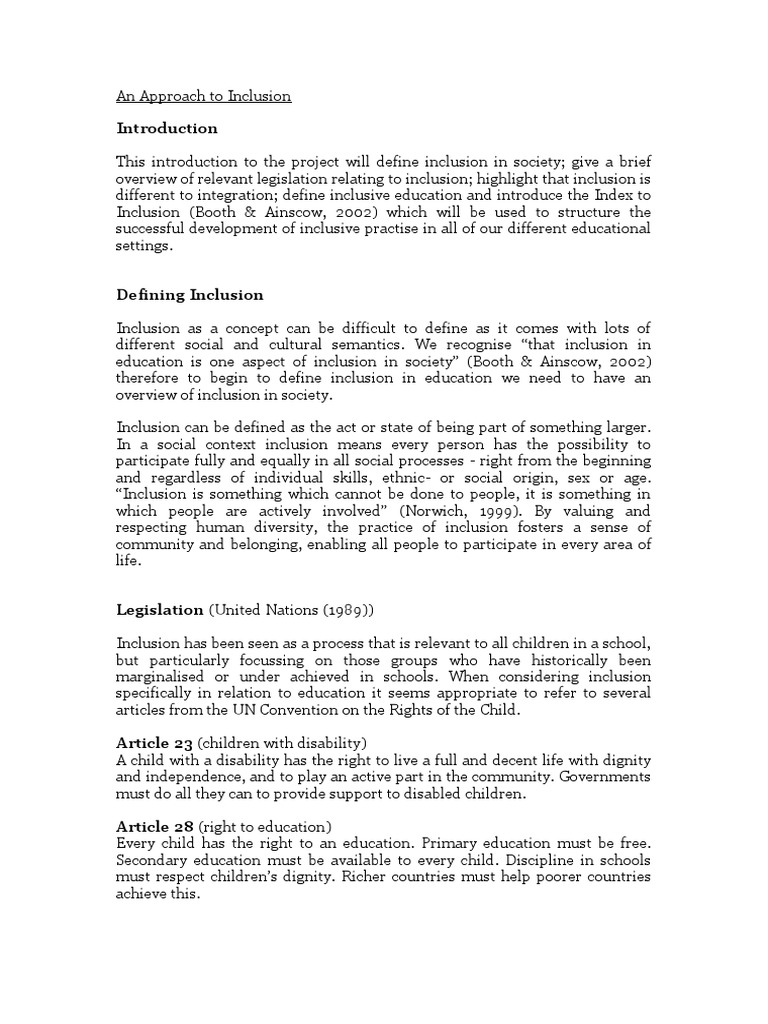 In addition to this figure 1 from the Index for Inclusion states that inclusion in