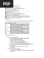 This document contains a list of users with their corresponding user IDs and passwords. It also shows the access permissions for each user across 7 different shares, with 1 indicating access and 0 indicating no access. The admin user has full access to all shares while access varies for each of the other 5 users.