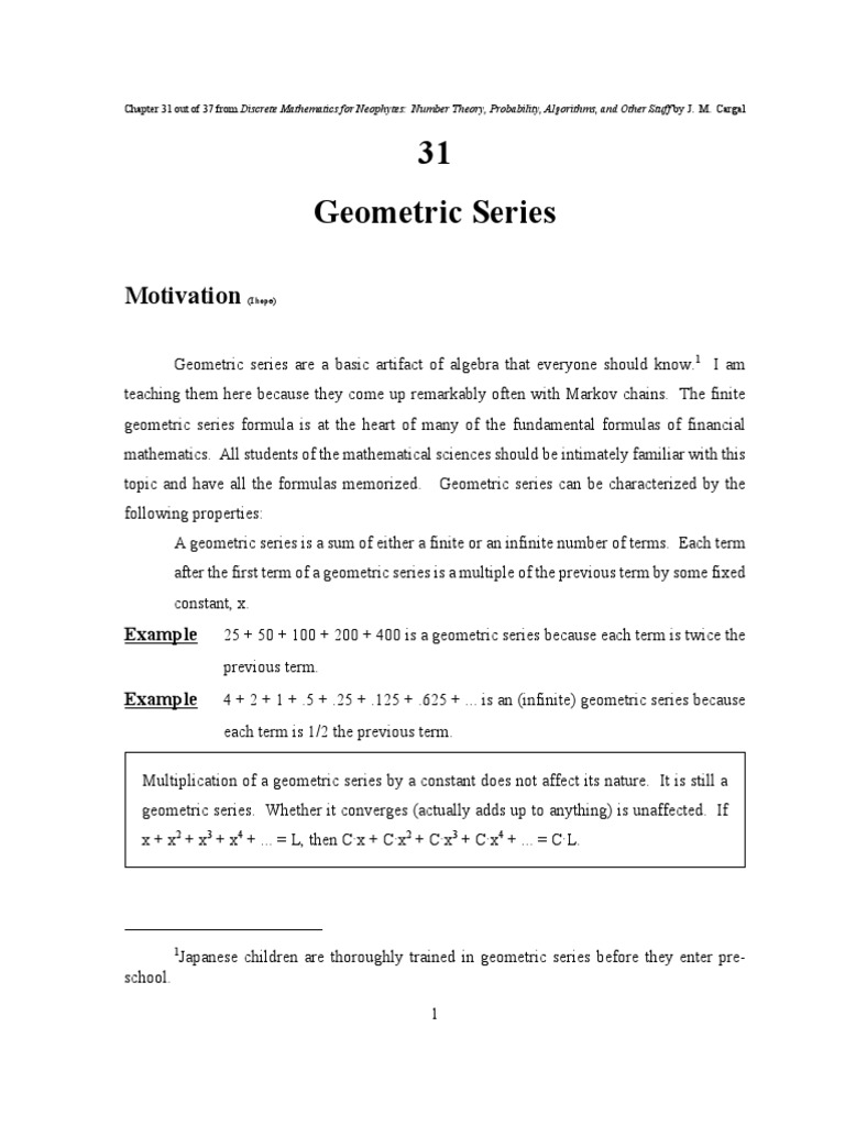 Geometric series are a basic artifact of algebra that everyone should know.1 I am