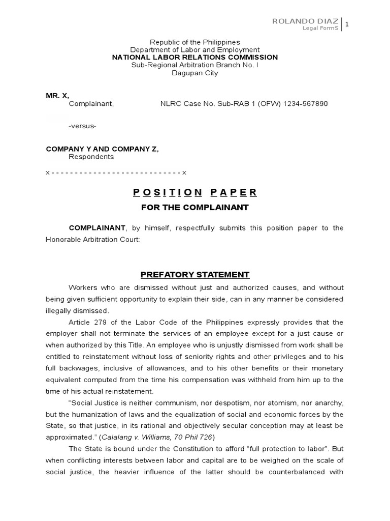 NLRC Case No. Sub-RAB 1 (OFW) 1234-567890