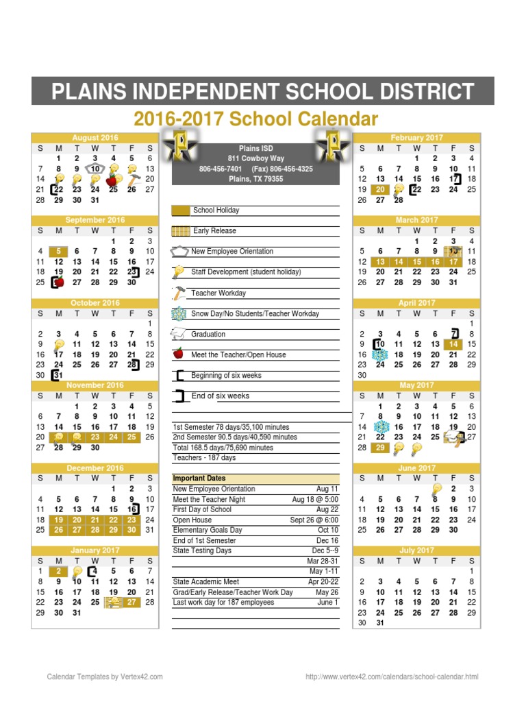 2016-2017 School Calendar