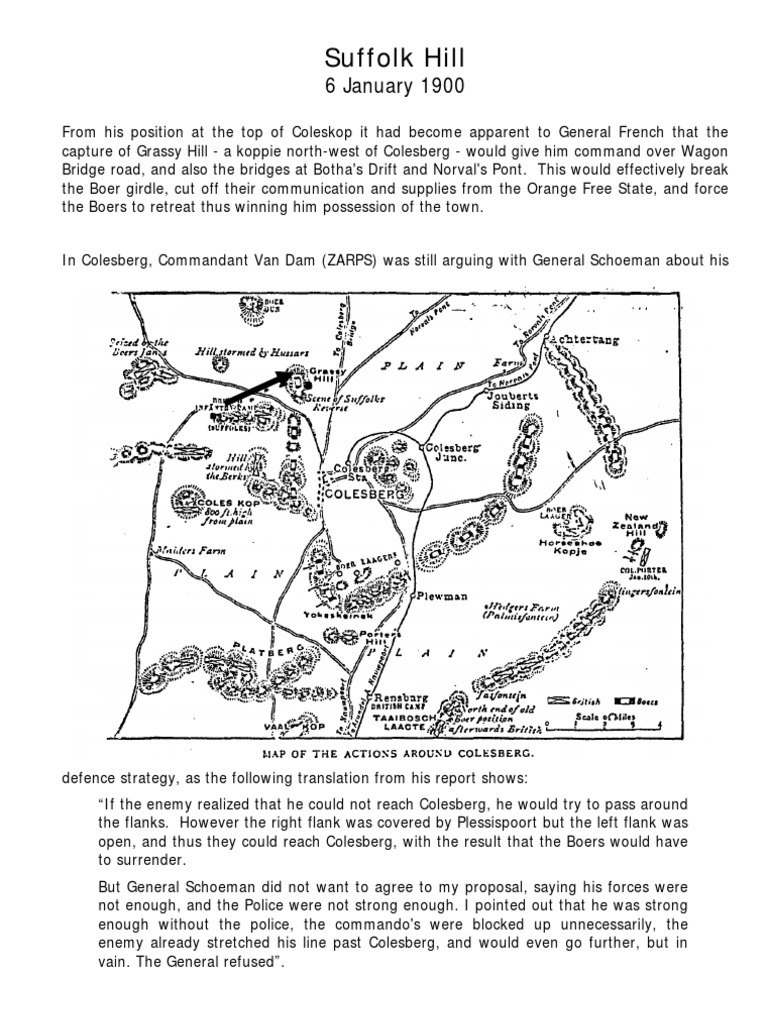 Colesberg position, and was therefore within 1,000 yards of Grassy Hill.