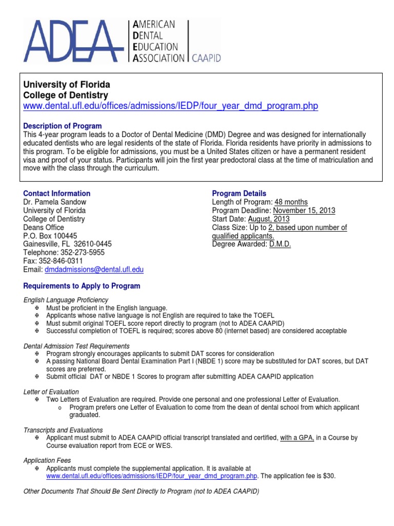 is specifically designed for international dentists who want to practice dentistry in the state of Florida.