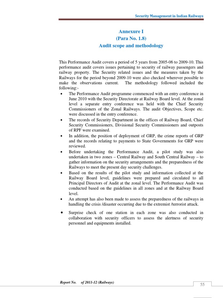 performance audit covers issues pertaining to security of railway passengers and