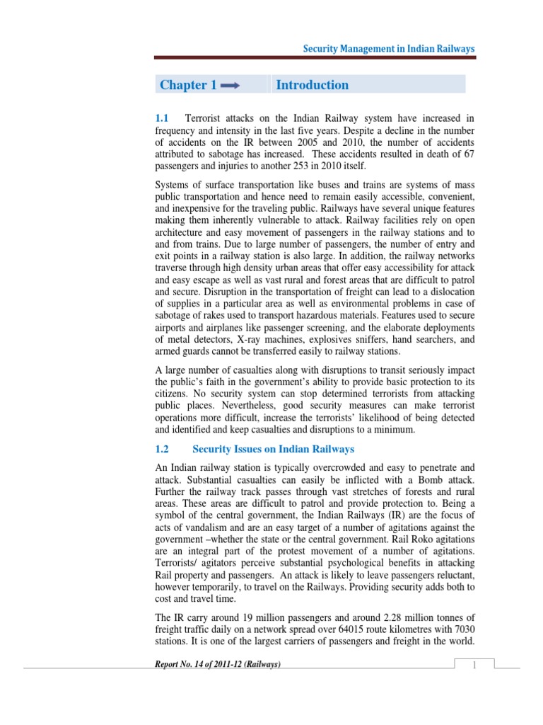 This performance audit covers issues pertaining to security of railway