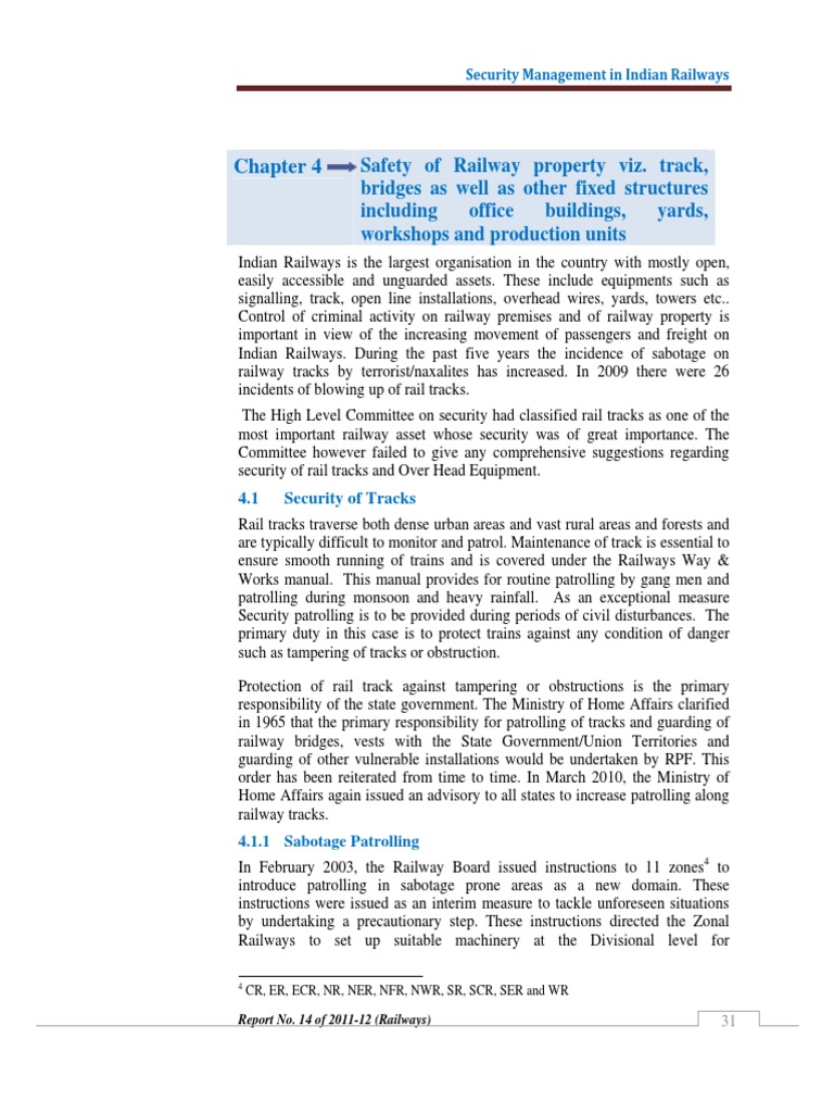 railway tracks by terrorist/naxalites has increased. In 2009 there were 26