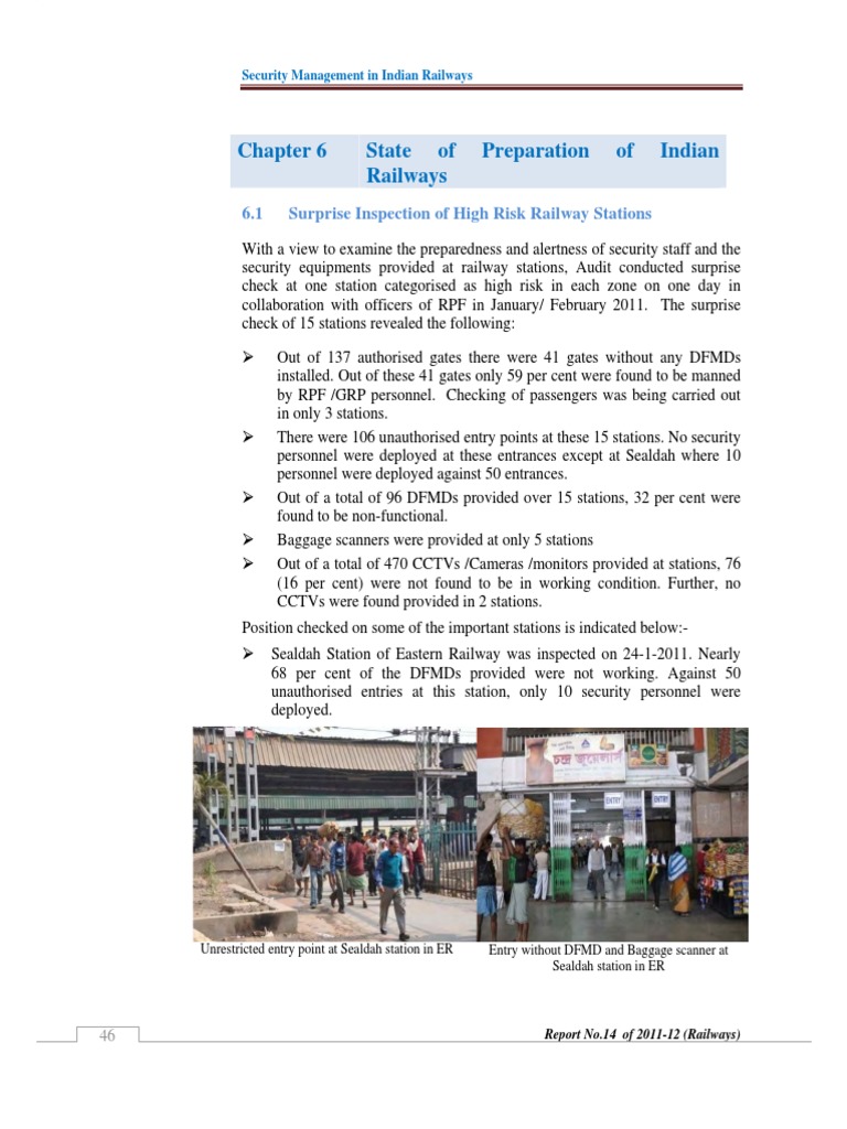 Sealdah Station of Eastern Railway was inspected on 24-1-2011. Nearly