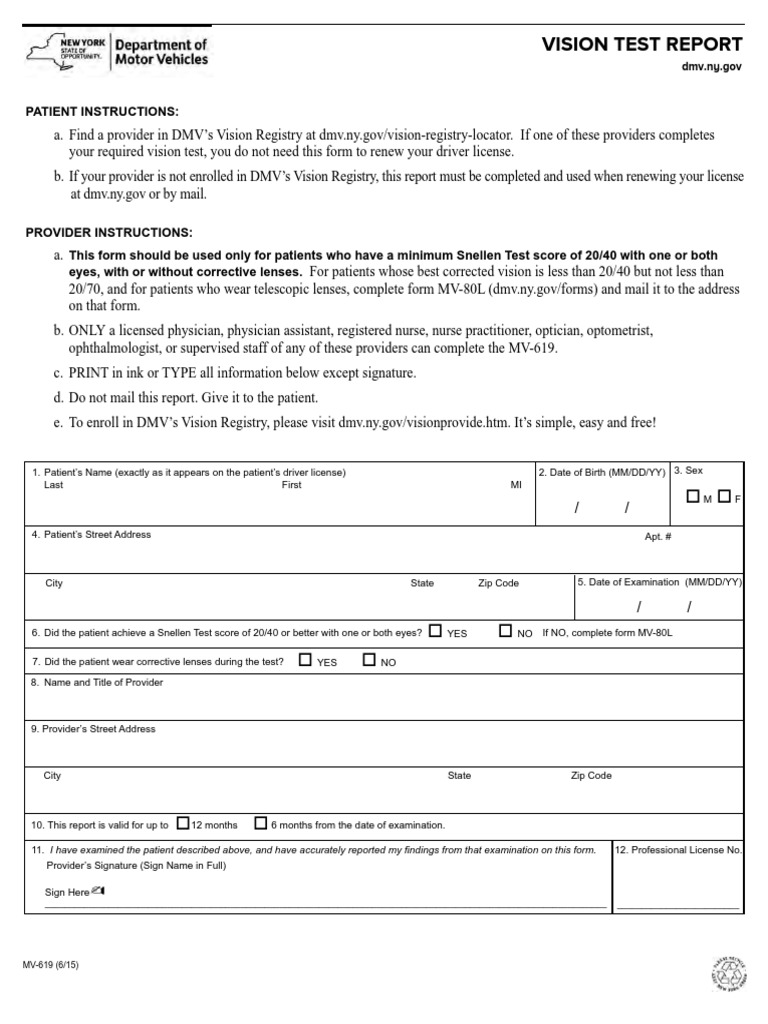 20/70, and for patients who wear telescopic lenses, complete form MV-80L (dmv.ny.gov/forms) and mail it to the address