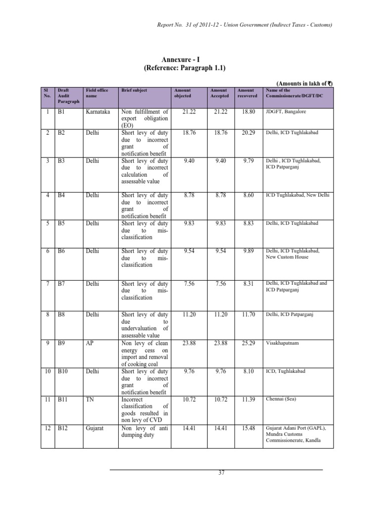 31 of 2011-12 - Union Government (Indirect Taxes - Customs)