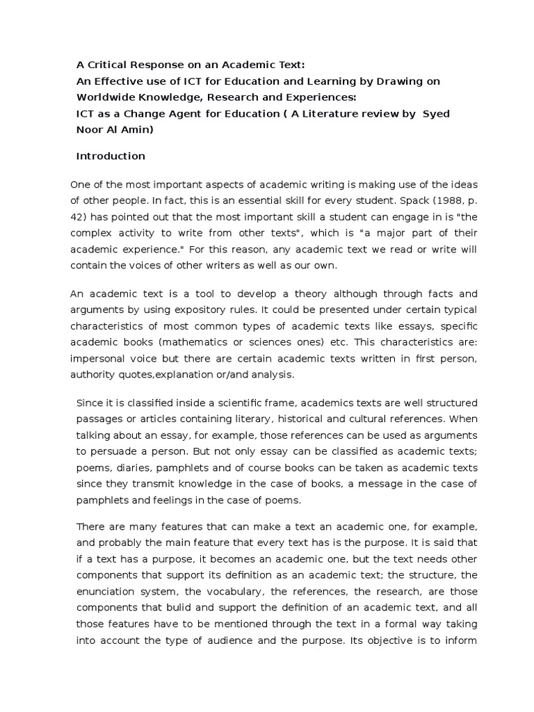A Critical Response on an Academic Text: