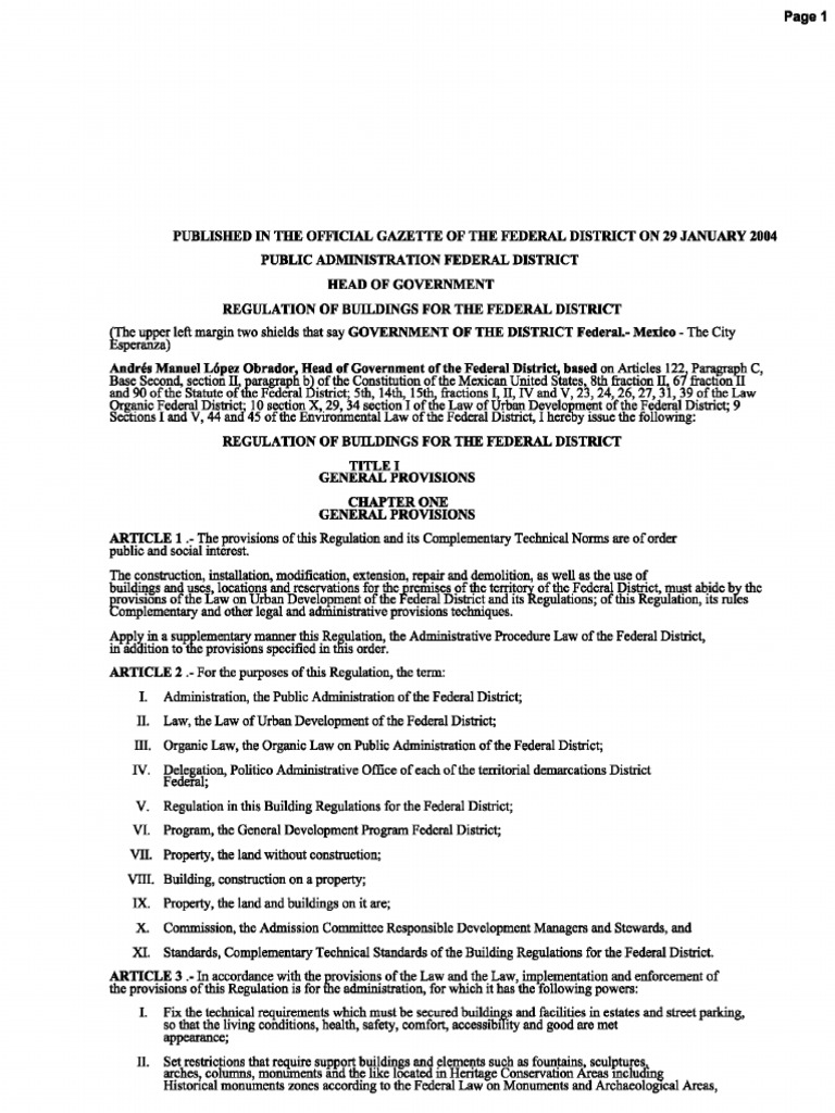 Building Code for the Federal District published in the Official Gazette of the Federal District