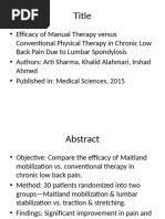 Conclusion : Spinal mobilization is better than routine conventional therapy .