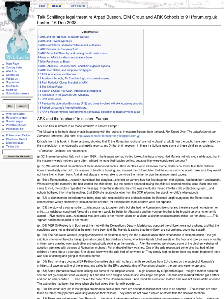 1 ARK and the 'orphans' in eastern Europe 2 ARK and Psychosynthesis 3 ARK's architects (studioearchitects) and 'euthenics' 4 ARK Schools not 'non-selective' 5 ARK School at Wembley and underground constructions 6 More on ARK's insidious associations here: 7 Nitin Parshotam at Brent 8 ARK (Absolute Return for Kids) and their eugenics agenda 9 ARK, Ron Beller, and subprime mortgages 10 ARK Academies and Hebrew 11 Academy Schools; Air Conditioning Units spread viruses. 12 Paul Roderick Clucas Marshall at ARK 13 The Killing Fields 14 Search a Child; Pay Cash. International Adoptions 15 Anomalies in the plans for Ark Academy 16 DNA and Genes. 17 Paedophile Liberation Exchange (PIE) and those involved with Ark Academy schools.18 Robert Lanwarne's interesting history. 19 ARK's Master Funding Agreement; no contractual obligation to teach anything at all pageview source