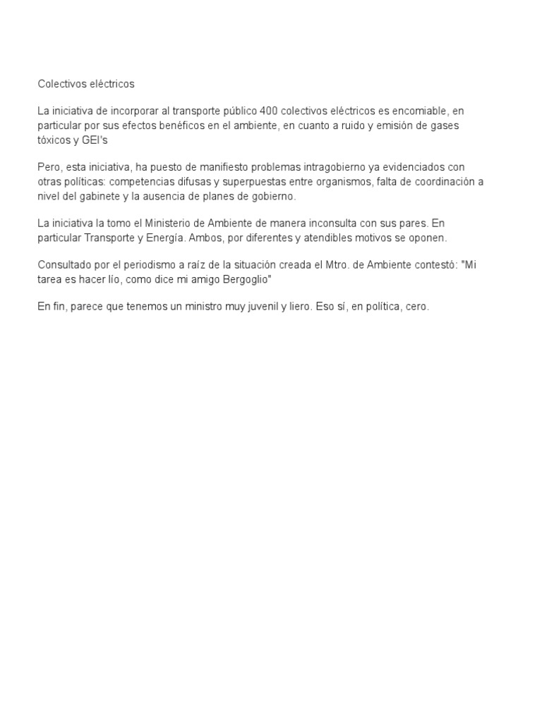 La iniciativa de incorporar al transporte pblico 400 colectivos elctricos es encomiable, en