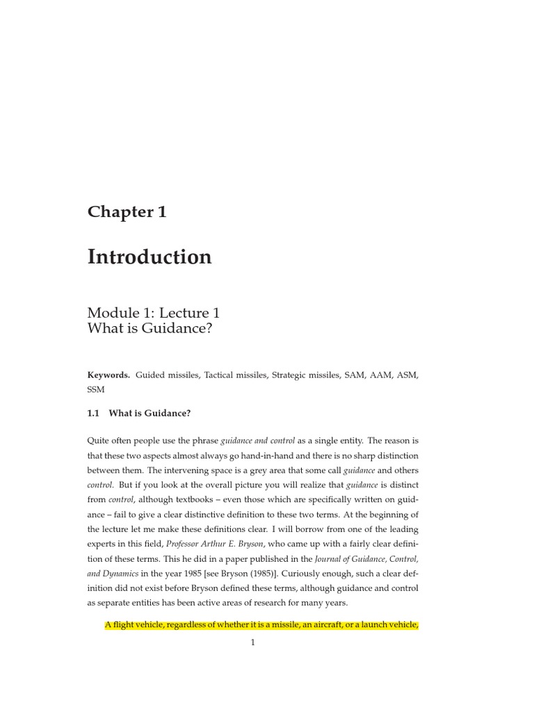 Since the focus of these lectures are mainly on guidance of ight vehicles, let us