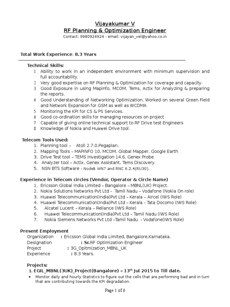 2 Very good expertise on RF Planning & Optimization for coverage and capacity.