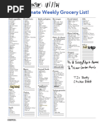 The document contains 6 pick lists for ingredients needed for various dishes including produce, meat and dairy, canned foods and breads, condiments and herbs/spices, boxed and frozen foods, and miscellaneous items. Each list includes columns for ingredients, units, and quantities needed for soups, salads, entrees, vegetables, starches, desserts, other units, and totals.