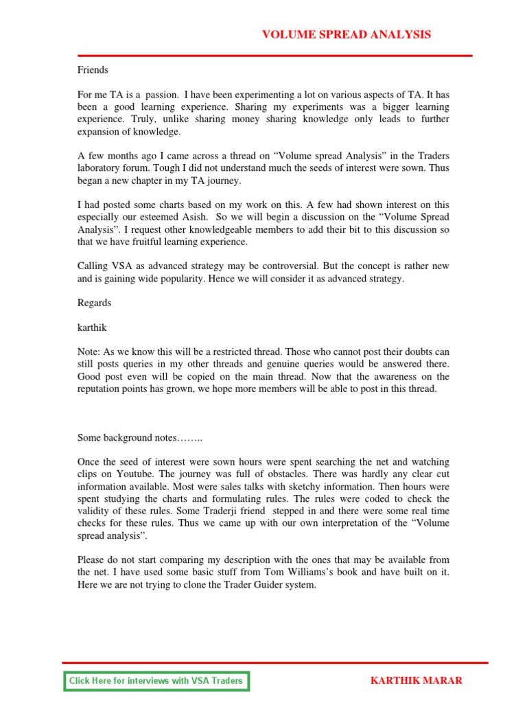 A few months ago I came across a thread on Volume spread Analysis in the Traders