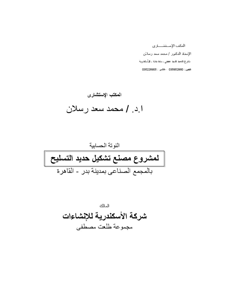 ﻟﻤﺸﺮوع ﻣﺼﻨﻊ ﺗﺸﻜﻴﻞ ﺣﺪﻳﺪ اﻟﺘﺴﻠﻴﺢ