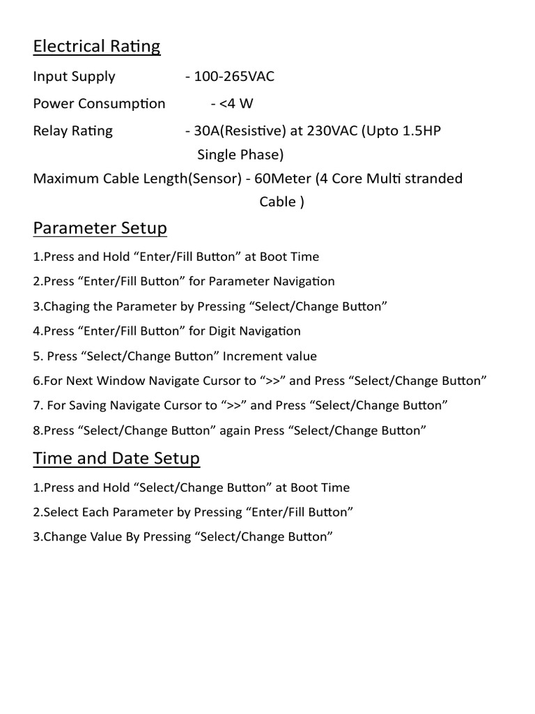 Maximum Cable Length(Sensor) - 60Meter (4 Core Multi stranded