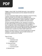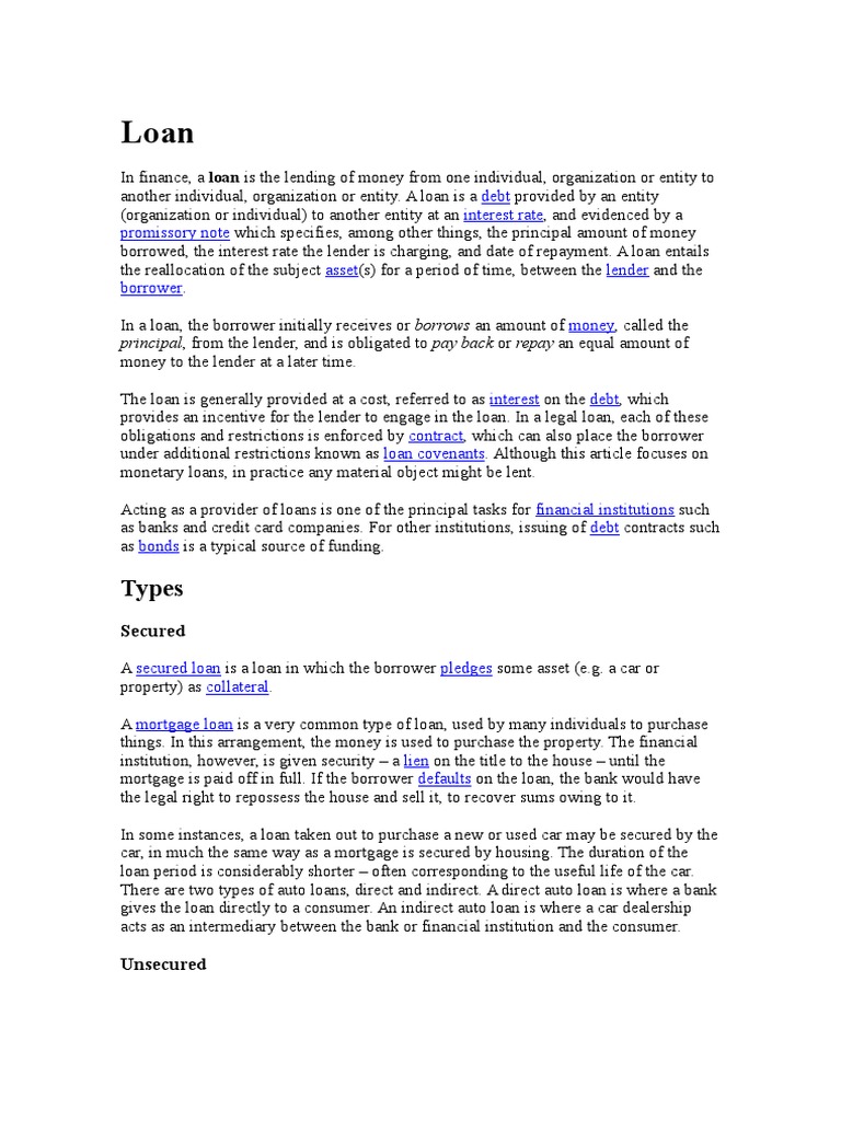 person (consumer) or a business. Common personal loans include mortgage loans, car
