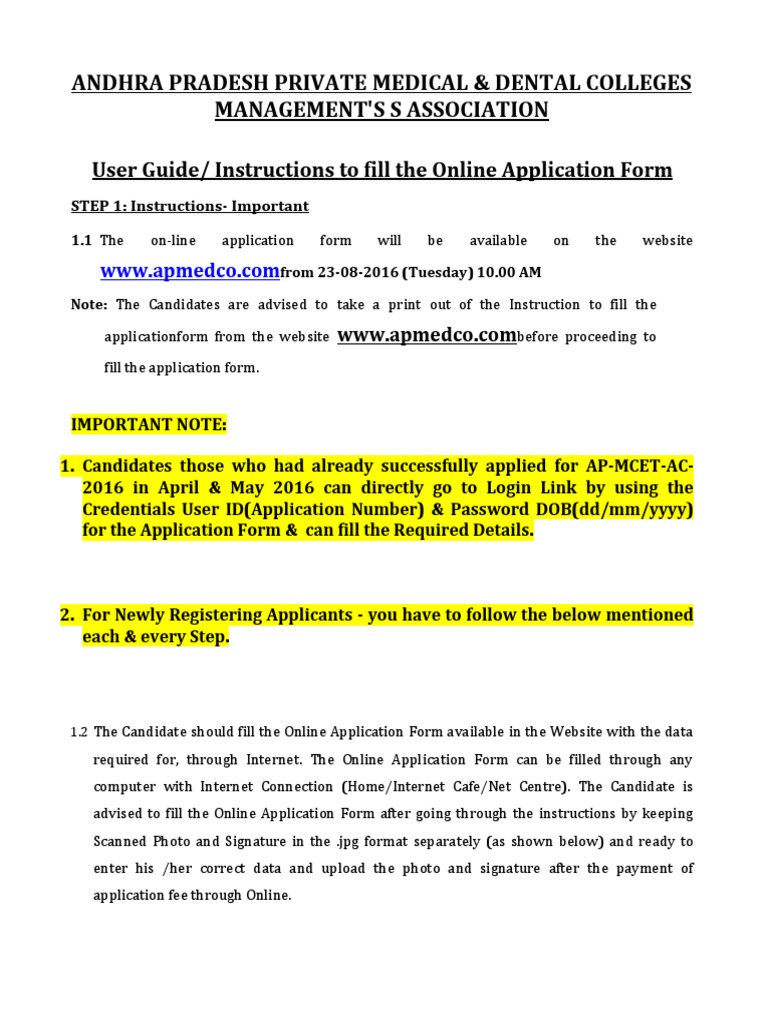 THIS USER GUIDE OF MCET AC 2016 IS FOR CANDIDATES APPLICATION FORM
