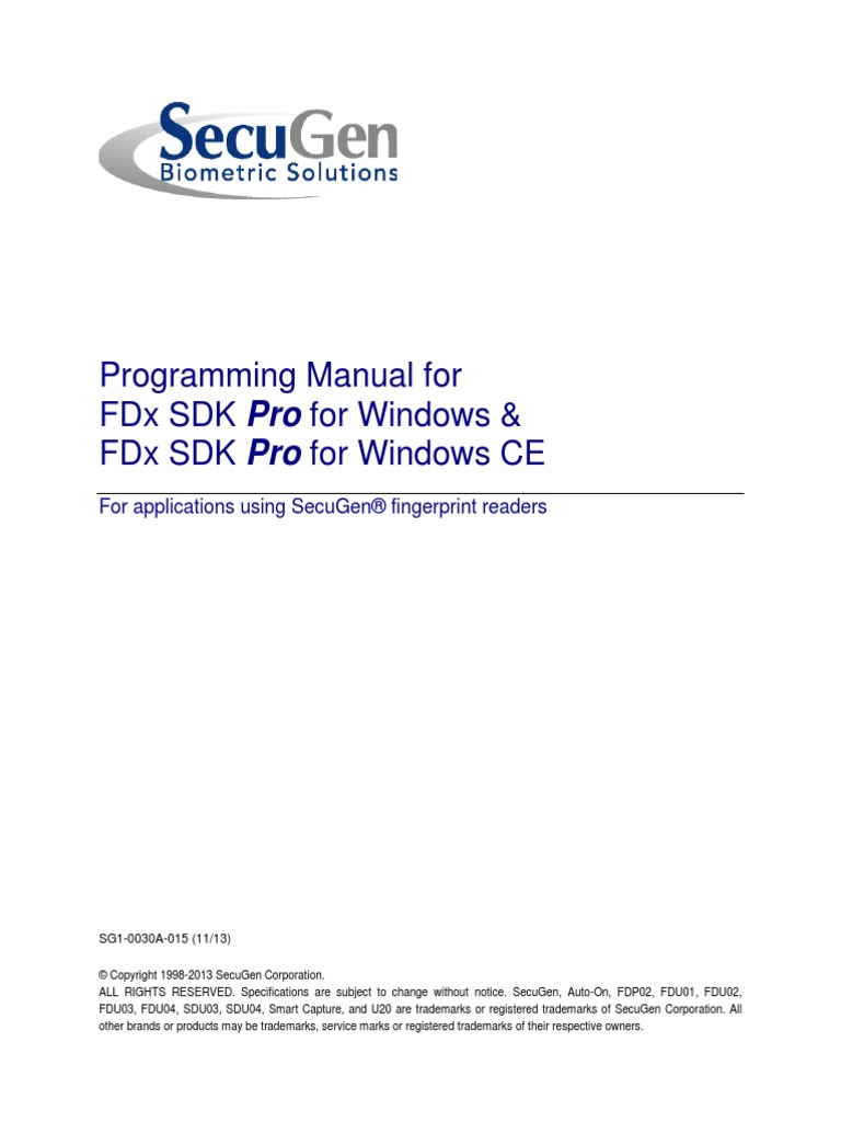 FDx SDK Pro .NET Programming Manual.
