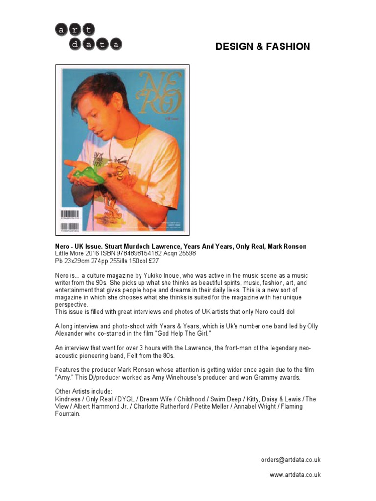 Nero - UK Issue. Stuart Murdoch Lawrence, Years And Years, Only Real, Mark Ronson