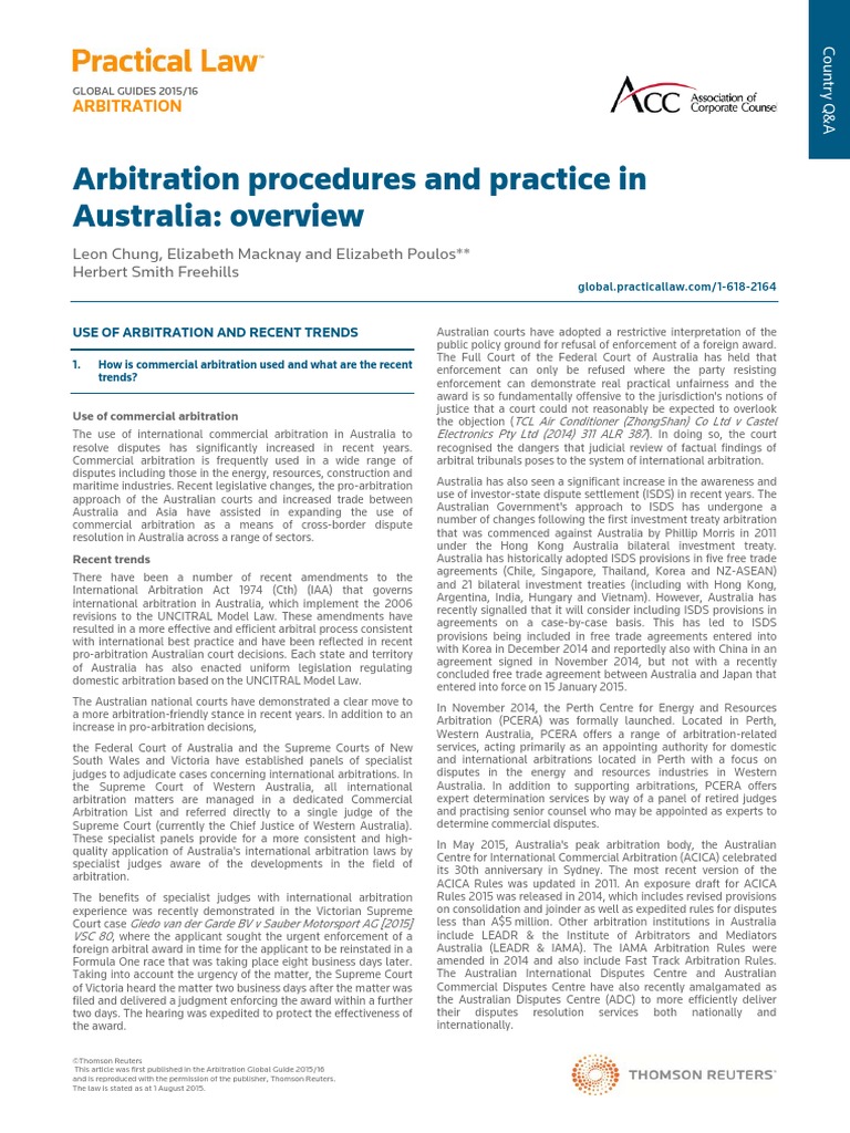 These specialist panels provide for a more consistent and highquality application of Australia's international arbitration laws by