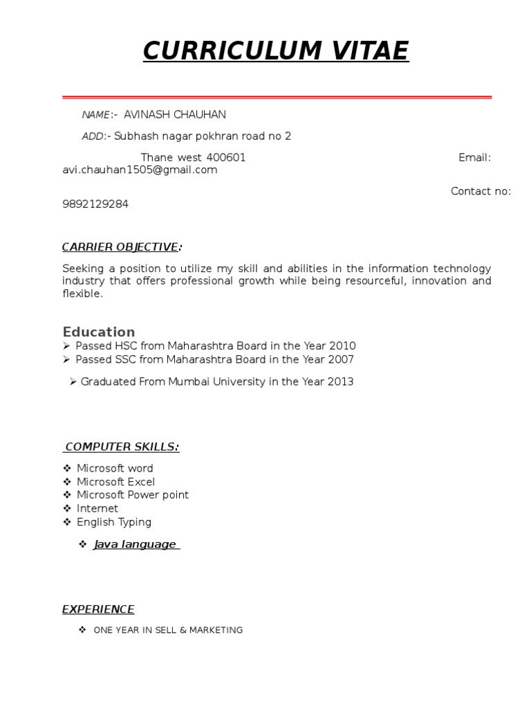 Passed HSC from Maharashtra Board in the Year 2010
