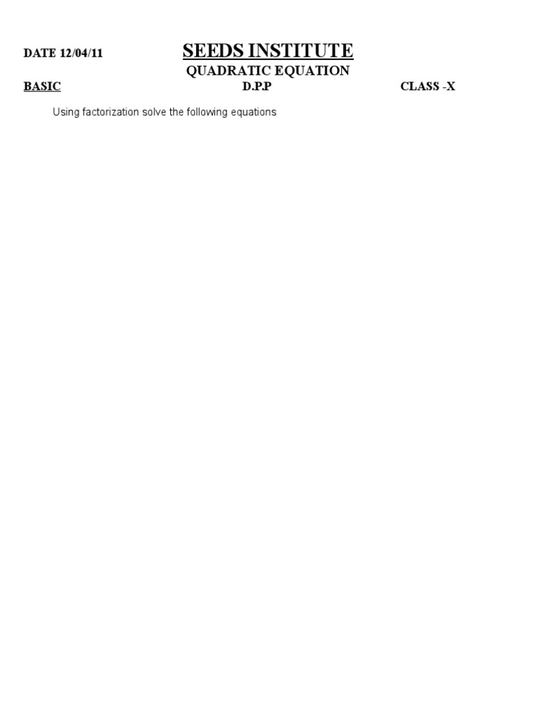 7. Solve the quadratic equation 9x2 3x 20 = 0. By the method of factorization