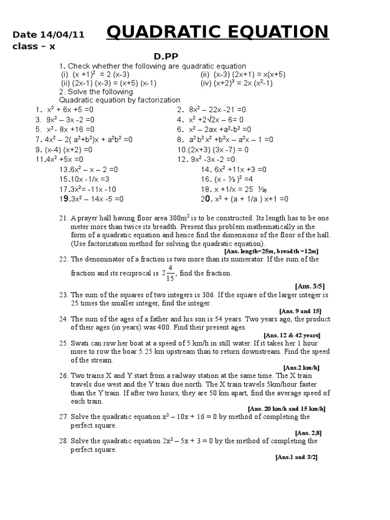 (Use factorization method for solving the quadratic equation).