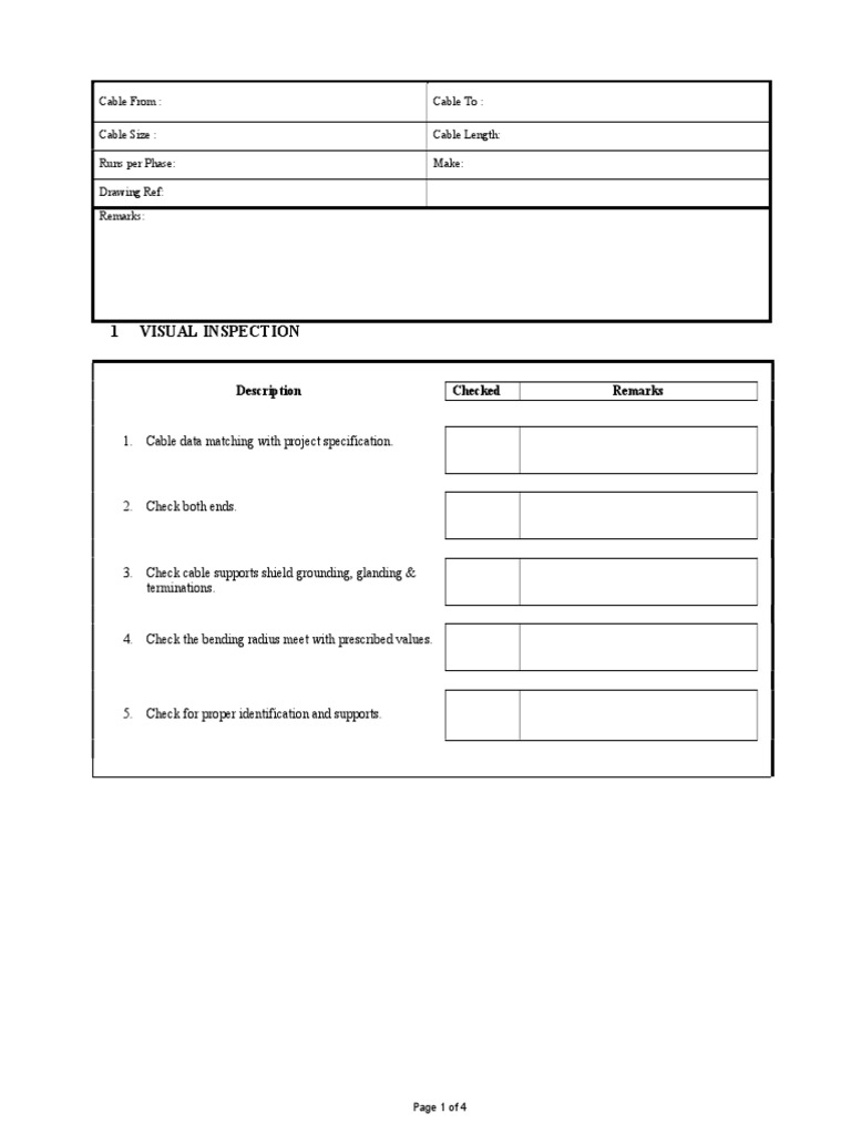 Check cable supports shield grounding, glanding &