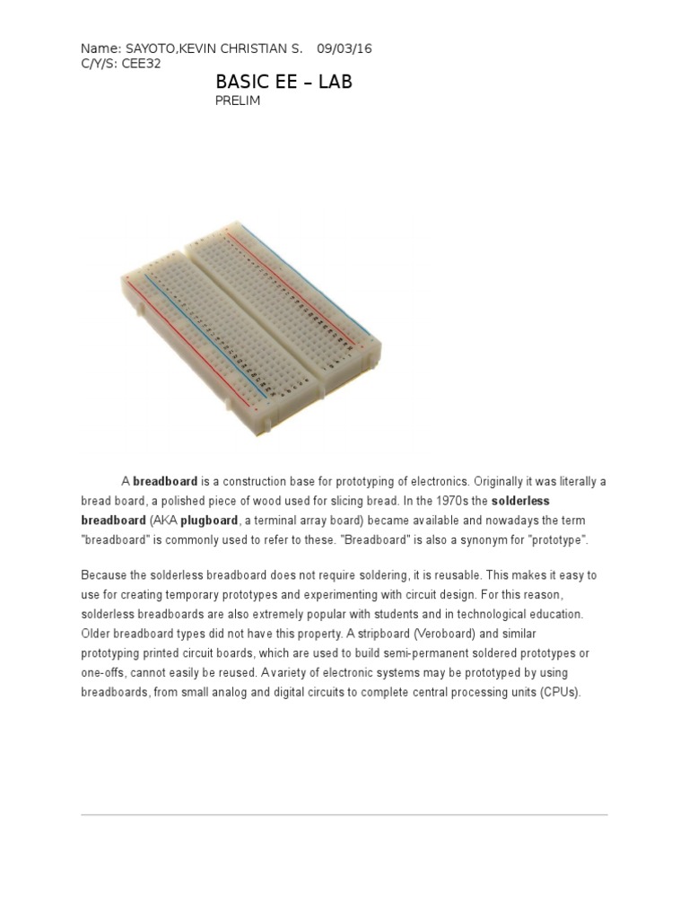breadboards, from small analog and digital circuits to complete central processing units (CPUs).