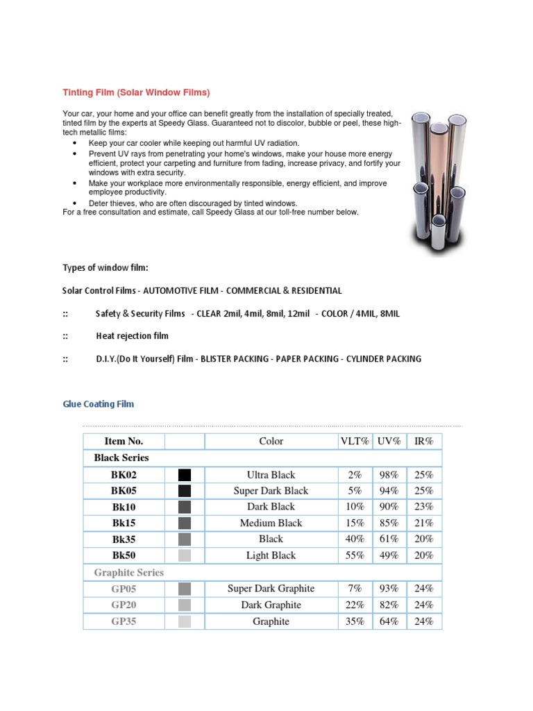 tinted film by the experts at Speedy Glass. Guaranteed not to discolor, bubble or peel, these hightech metallic films:
