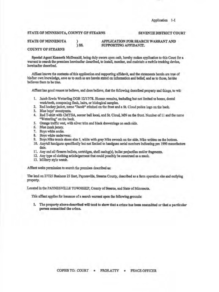 Search Warrant Application Document