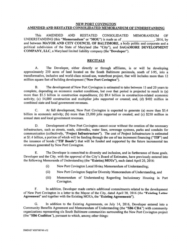 Updated Port Covington MOU