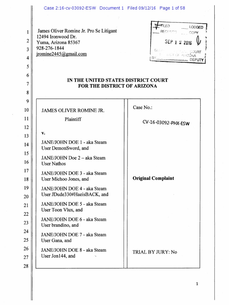 This document appears to be a legal case filing that was submitted to a federal court. It includes a cover page with case information and signatures as well as numerous attached documents providing details about the case. However, without more context about the specific claims, parties involved, or nature of the lawsuit, it is difficult to extract a brief high-level summary. The document itself does not contain much substantive information beyond identifying that a case was filed in federal court on a given date.