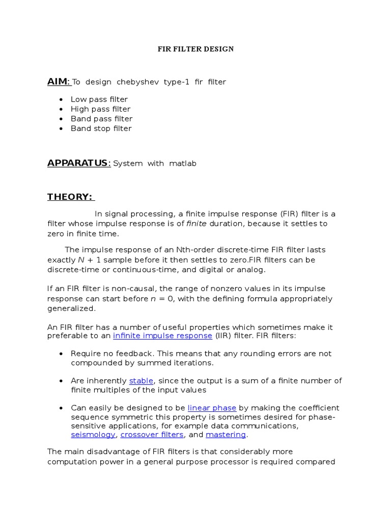 preferable to an infinite impulse response (IIR) filter. FIR filters: