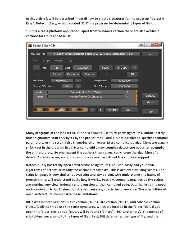In this article it will be described in detail how to create signatures for the program Detect It