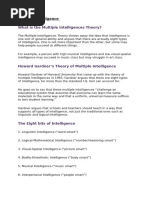Gardners multiple intelligence theory says that instead of one kind of general intelligence, there are at