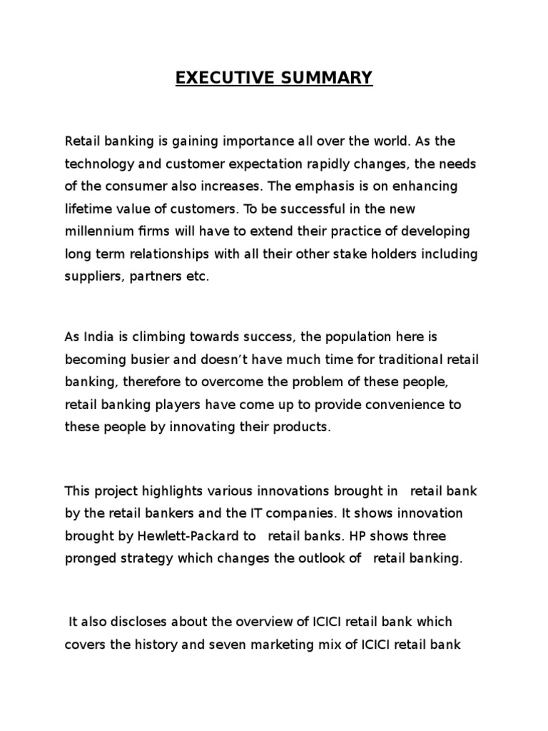 It also discloses about the overview of ICICI retail bank which