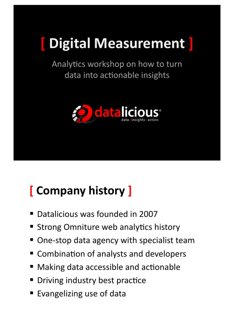Digital Measurement: Analy&cs Workshop On How To Turn Data Into Ac&onable Insights