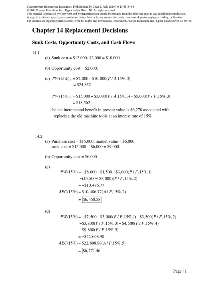AEC (12%) = [($36,500 $6,300)( A / P,12%,5) + $6,300(0.12)]+ $24, 000