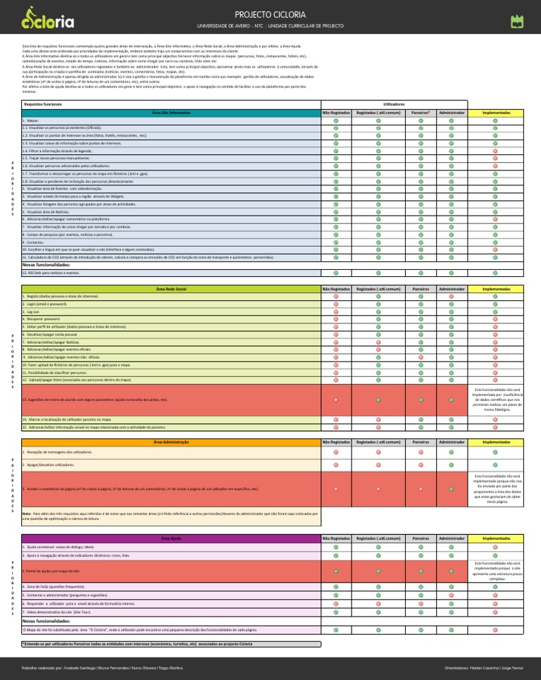 *Entende-se por utilizadores Parceiros todas as entidades com interesse (económico, turistico, etc) associadas ao projecto Cicloria