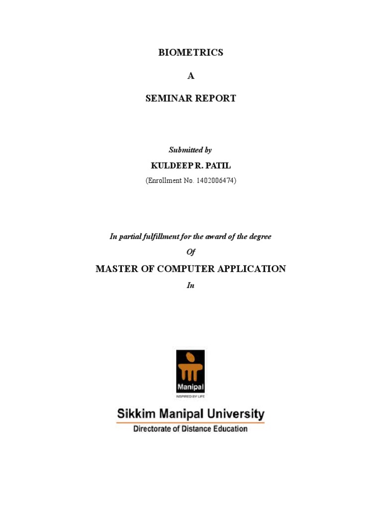 Apart from the efforts of me, the success of this seminar on BIOMETRICS depends largely on