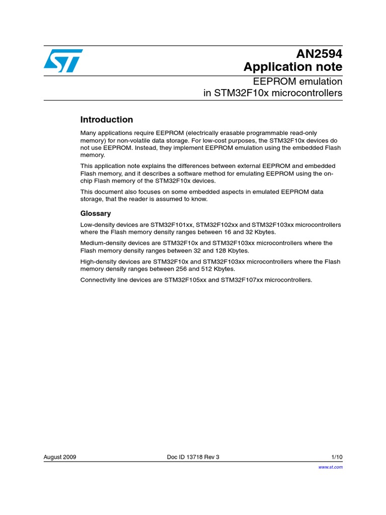 Flash memory, and it describes a software method for emulating EEPROM using the onchip Flash memory of the STM32F10x devices.