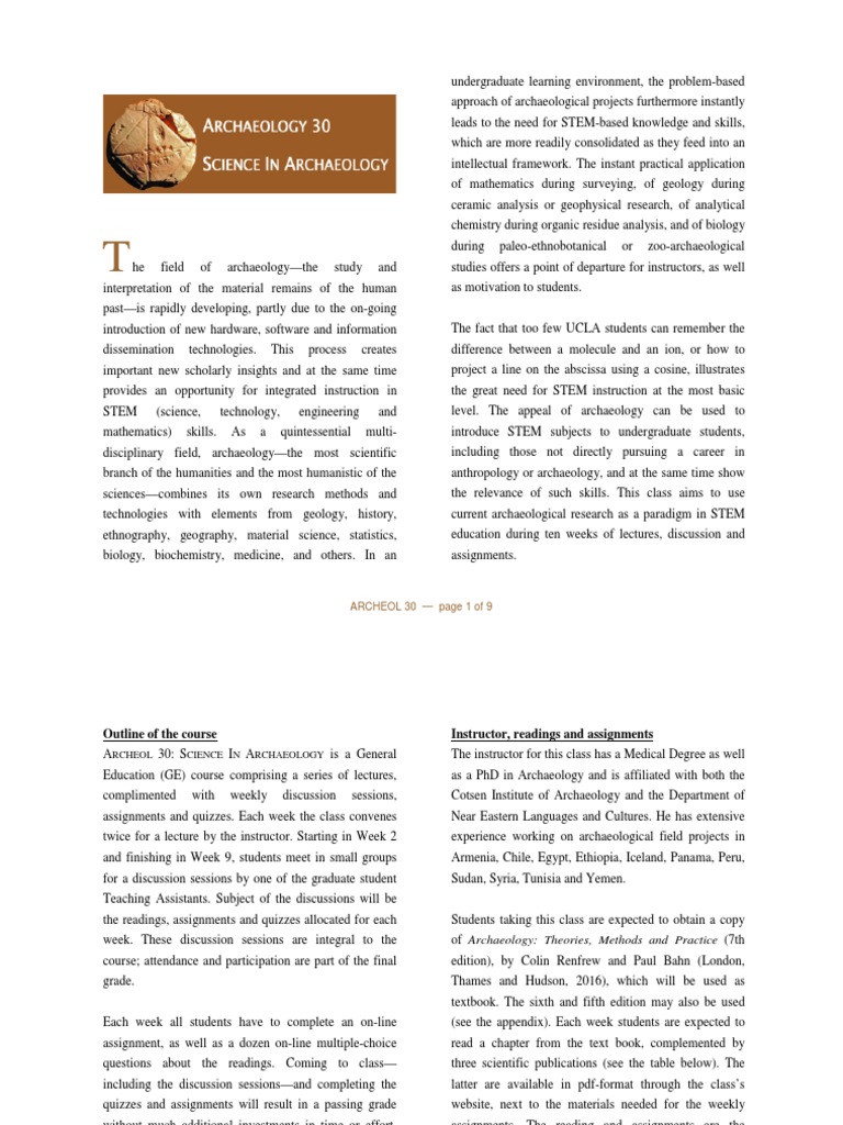 ARCHEOL 30: SCIENCE IN ARCHAEOLOGY is a General