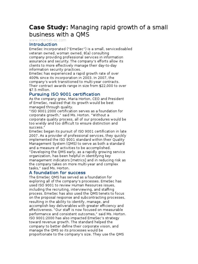 ISO 9001:2000 has also impacted EmeSecs strategy