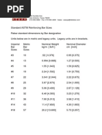 Note: Imperial bar sizes give the diameter in units of 18 inch, so that #8 = 88 inch = 1 inch diameter.